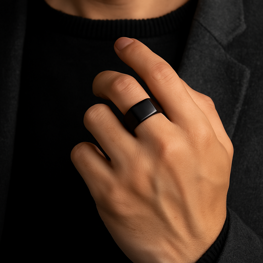 The Forge Ring in black stainless steel embodies modern masculinity with a sleek, assertive edge. Its sculpted silhouette and deep obsidian tone project power, confidence, and silent strength—ideal for those who lead with purpose and wear their values with pride.