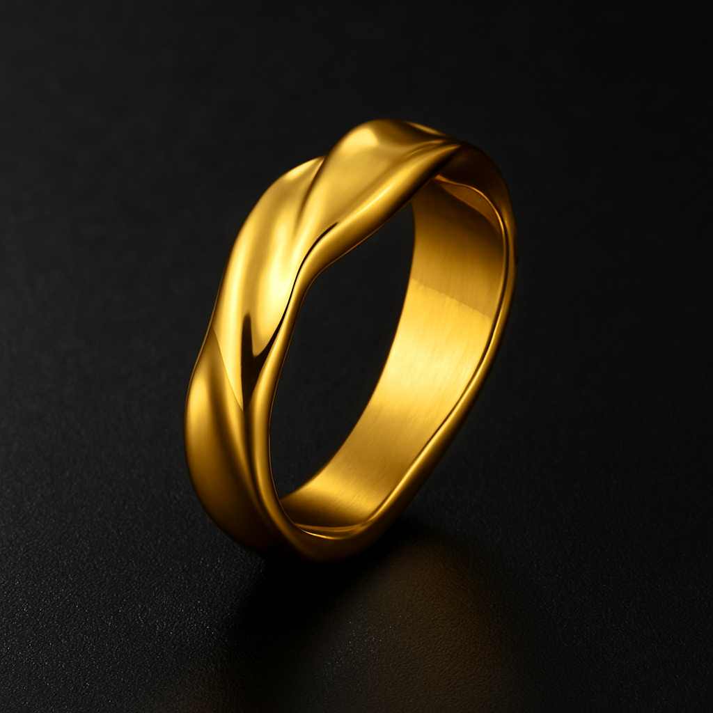 The Gilded Vanguard Ring makes a confident entrance with its wave-like curvature and radiant gold finish. Crafted from high-grade stainless steel, it brings a sophisticated edge to your style—ideal for the modern man who leads with presence and polish.